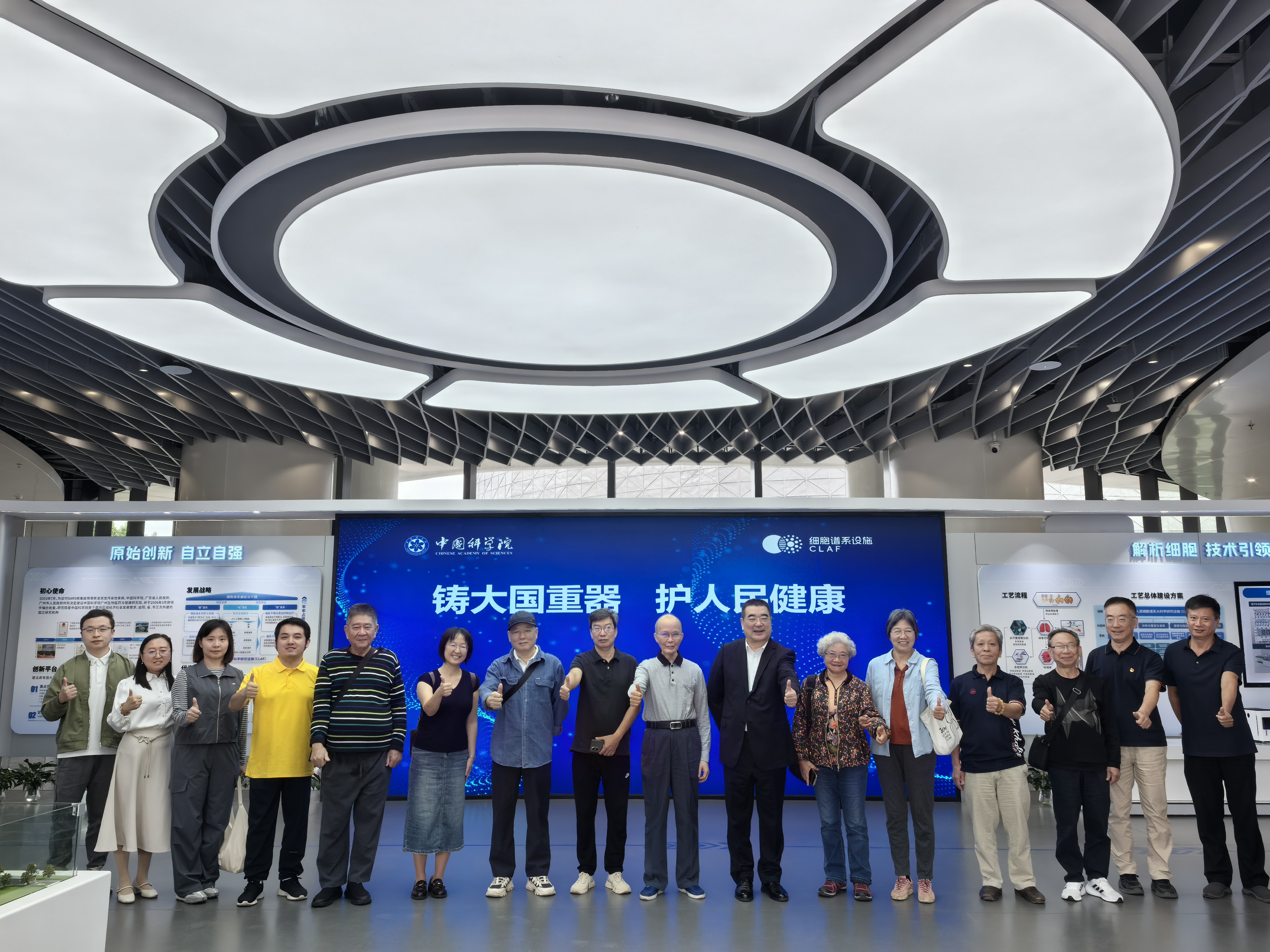 活動(dòng)中,大家走進(jìn)人類細(xì)胞譜系大科學(xué)研究設(shè)施展廳,認(rèn)真聽取設(shè)施介紹,深入了解國家重大科技基礎(chǔ)設(shè)施項(xiàng)目的建設(shè)進(jìn)展與應(yīng)用前景。座談交流環(huán)節(jié)中,徐海代表廣州健康院向離退休老同志致以熱烈歡迎和誠摯的節(jié)日問候,和大家共同觀看廣州健康院宣傳片,回顧發(fā)展歷程,并圍繞廣州健康院的發(fā)展及設(shè)施建設(shè)中黨建對(duì)科研攻關(guān)的引領(lǐng)作用等展開熱烈討論。廣州分院原院長耿安松、離退休黨支部書記郭震、離退休黨支部委員李梅等老同志陸續(xù)發(fā)言,對(duì)廣州健康院為本次活動(dòng)所作的細(xì)致安排表示感謝,同時(shí)為細(xì)胞譜系設(shè)施的建設(shè)和廣州健康院未來發(fā)展建言獻(xiàn)策并送上美好祝福。