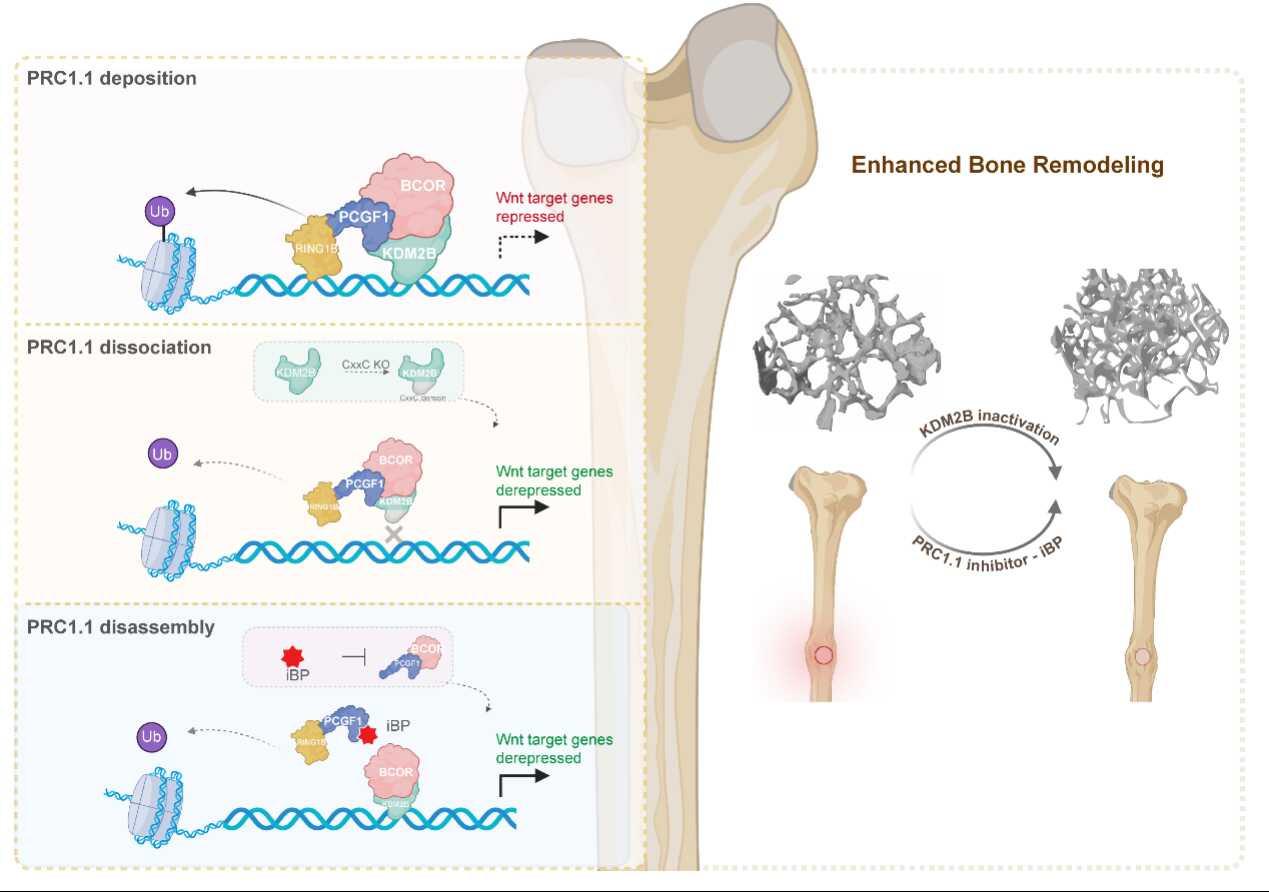 近日,中國科學院廣州生物醫藥與健康研究院聯合天津醫科大學發現了一種靶向PRC1.1復合物的小分子抑制劑,該小分子通過靶向抑制PRC1.1激活Wnt/β-catenin信號通路,從而促進骨形成。相關成果以Targeted disruption of PRC1.1 complex enhances bone remodeling為題,在線發表于Nature Communications期刊。