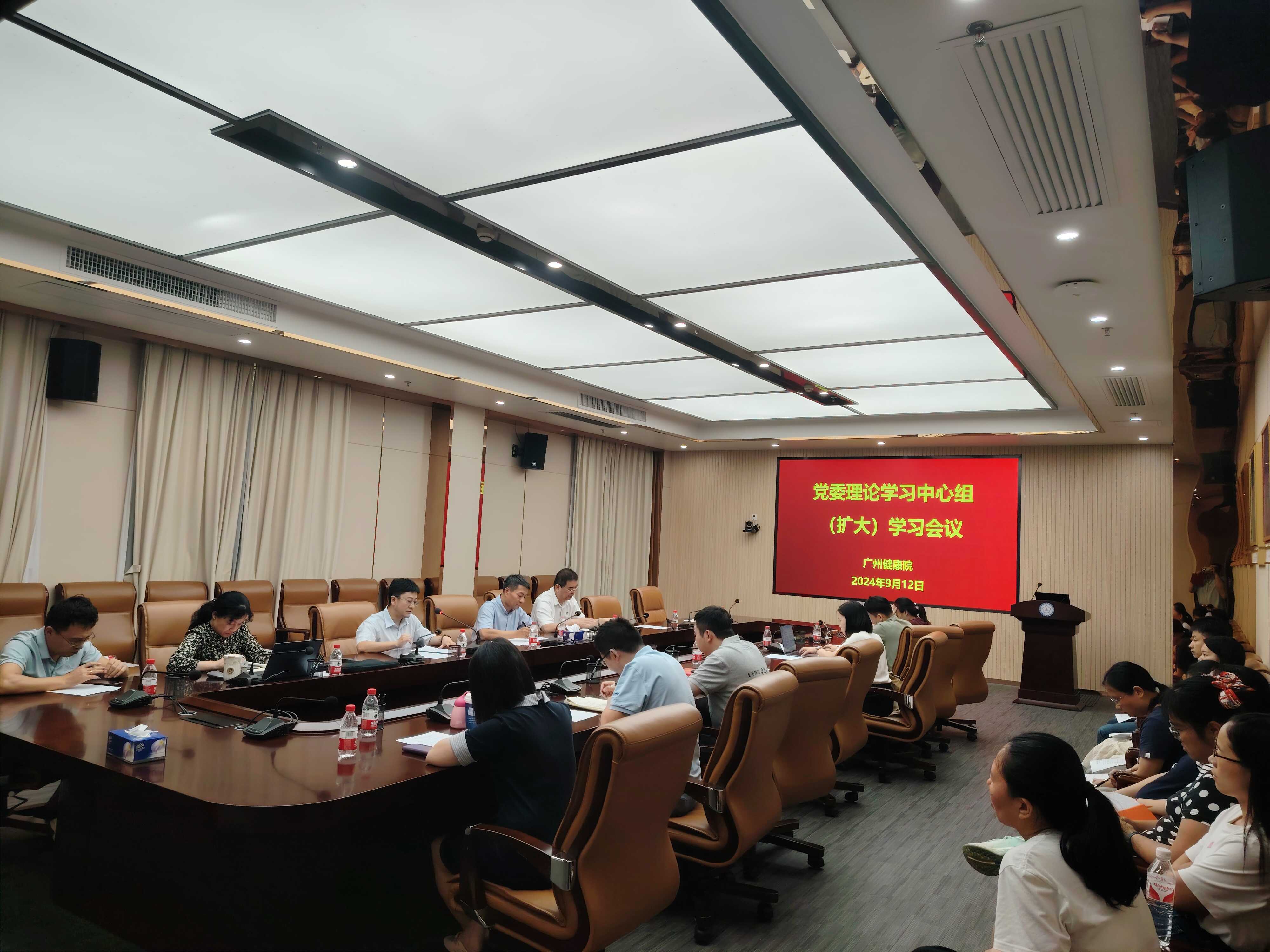 9月12日下午,廣州健康院召開黨委理論學習中心組(擴大)學習會,傳達學習中國科學院2024年夏季黨組擴大會精神和院黨組重要通知精神。會議由黨委書記張鴻翔主持,黨委委員、黨支部書記(或副書記)、支部紀檢委員參會。