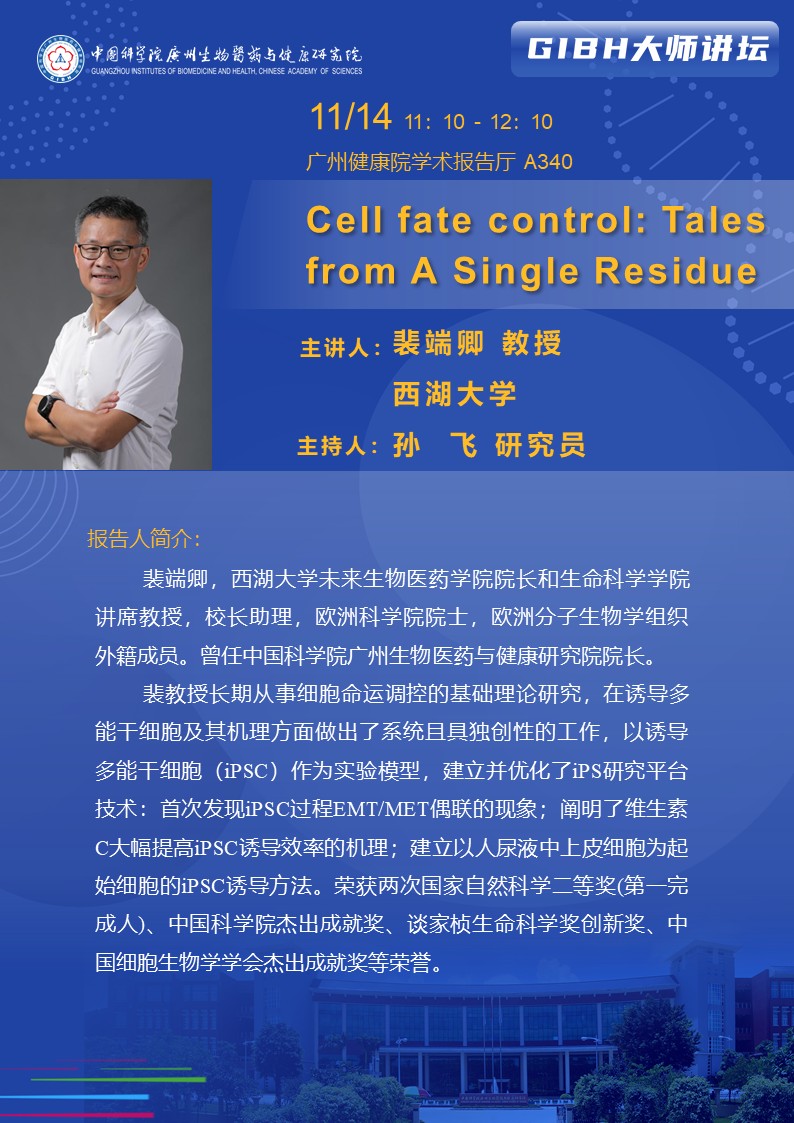 2025年11月14日大師講壇:Cell fate control: Tales from A Single Residue