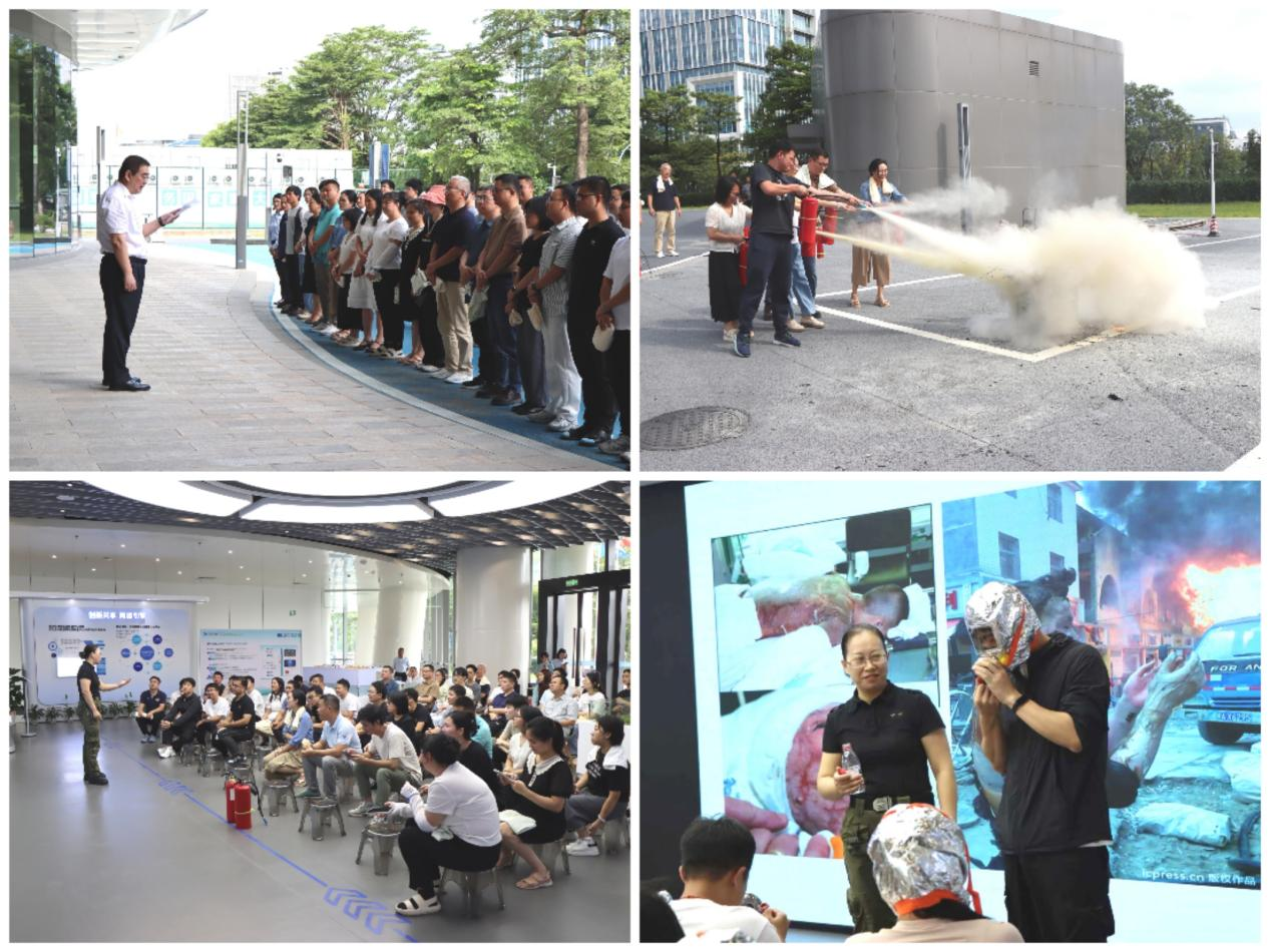 演練涵蓋應急疏散、滅火器實操、安全知識培訓三大核心環節,全程高效有序,達到預期效果。在應急疏散演練環節,研發樓全體人員在5分鐘內全部疏散至研發樓南面廣場。整個疏散過程緊張有序,充分檢驗了園區應急疏散路線的合理性與人員的快速響應能力。在滅火器實操演練環節,培訓老師講解滅火器的使用步驟及注意事項,參與人員逐一上手,實操滅火,切實掌握初起火災撲救技能。培訓環節則聚焦于火災逃生禁忌、人體燒傷正確急救方法和防暴力襲擊等核心要點。防煙面罩佩戴實操環節更是讓大家親手掌握濃煙環境下的防護技能,有效填補了安全知識盲區。
