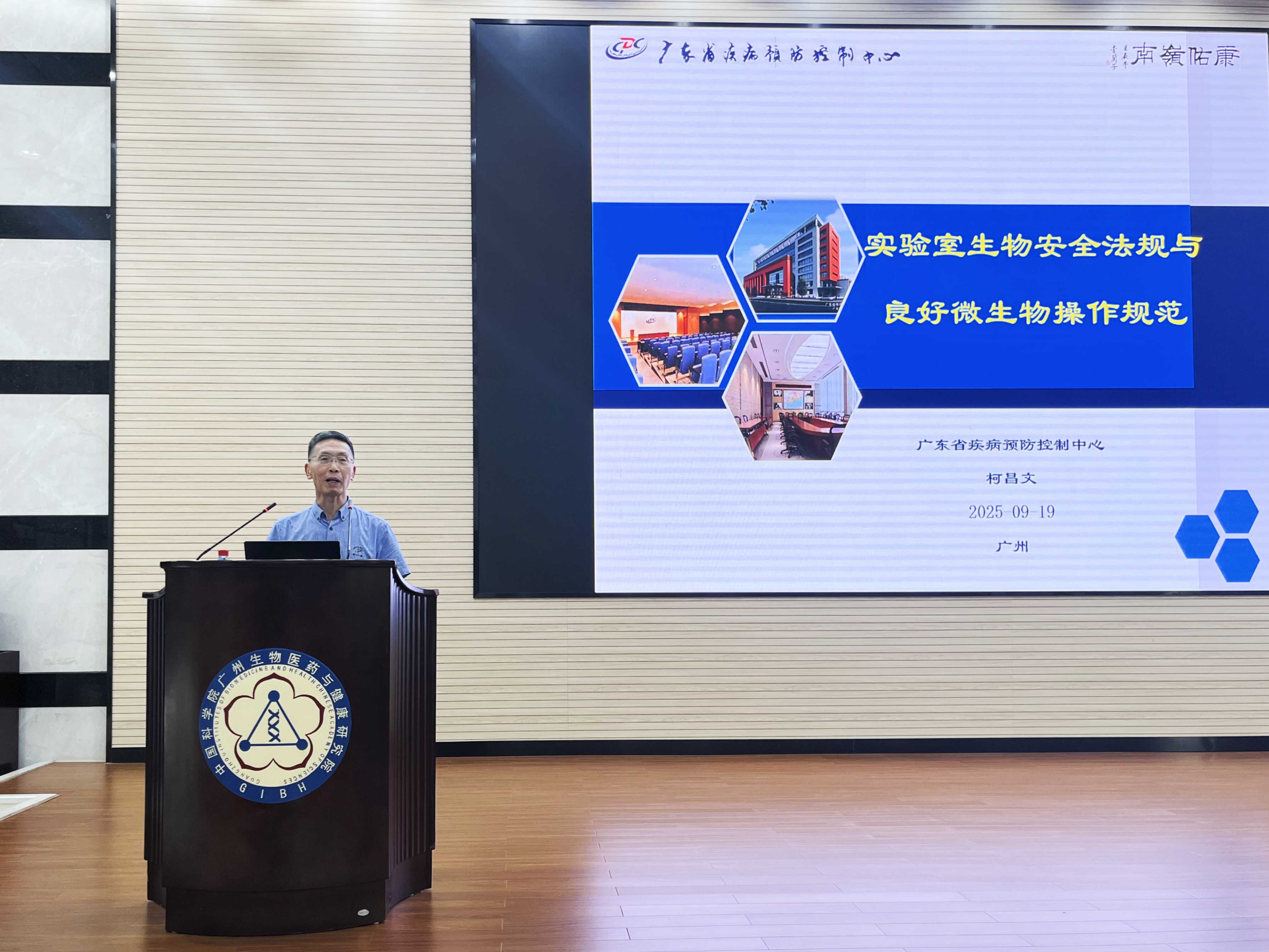 9月19日,中國(guó)科學(xué)院廣州生物醫(yī)藥與健康研究院(簡(jiǎn)稱 “廣州健康院”)舉辦“2025年度生物安全專題培訓(xùn)”,特邀廣東生物疾病預(yù)防與控制中心柯昌文教授主講。培訓(xùn)會(huì)由馮立強(qiáng)研究員主持,全院150余名師生參加。