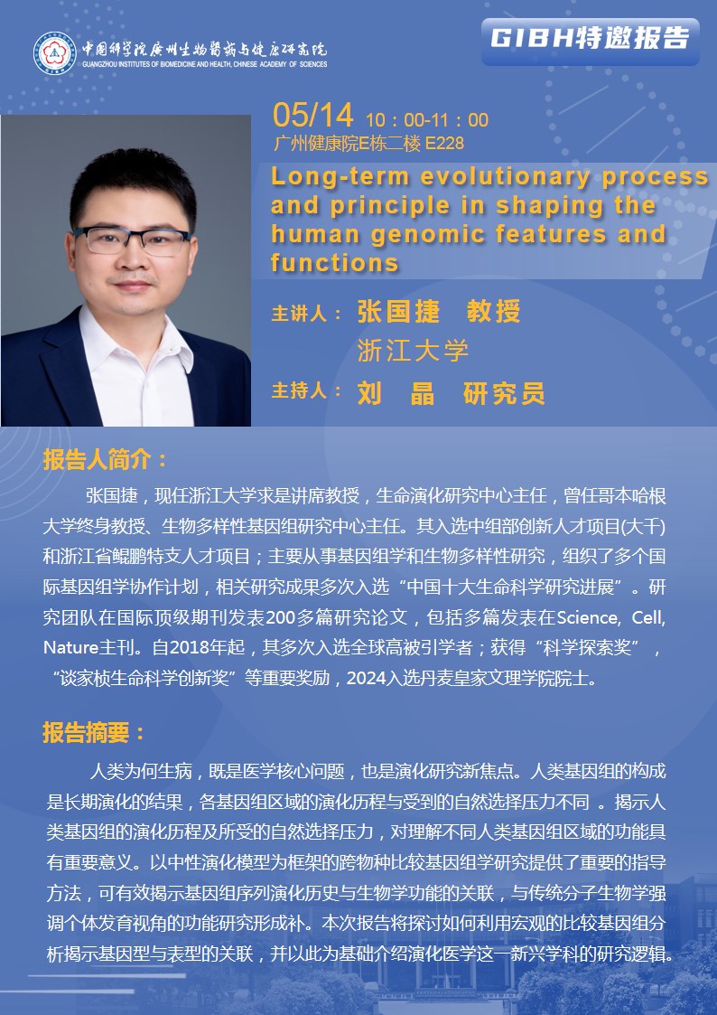 2025年5月14日特邀報告:Long-term evolutionary process and principle in shaping the human genomic features and functions